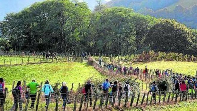 La etapa, que por primera vez se celebró en sábado y en horario de tarde, comenzó a las 17.00 horas, donde el grupo se dio cita en Sara. Allí, los excursionistas participaron en una pequeña concentración, para lanzar un conjuro invocando a las fuerzas de la naturaleza para contar con una buena experiencia en el camino.