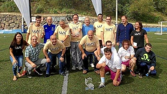 fundazioa. 150 personas se dieron cita durante la mañana de ayer en el campo de fútbol de Puio para participar en el V Torneo de Futbito de la Fundación Why Not, cuyo objetivo es el de mejorar la calidad de vida de las personas con enfermedad/trastorno mental y sus familiares. Como en anteriores ediciones, Real Sociedad Fundazioa colaboró con un evento cuyos participantes, de ocho centros guipuzcoanos, pudieron disfrutar de una mañana entretenida.Los veteranos Bixio Gorriz, José Mari Martínez, Miguel Fuentes y Periko Alonso entregaron los trofeos. Foto: Real Sociedad