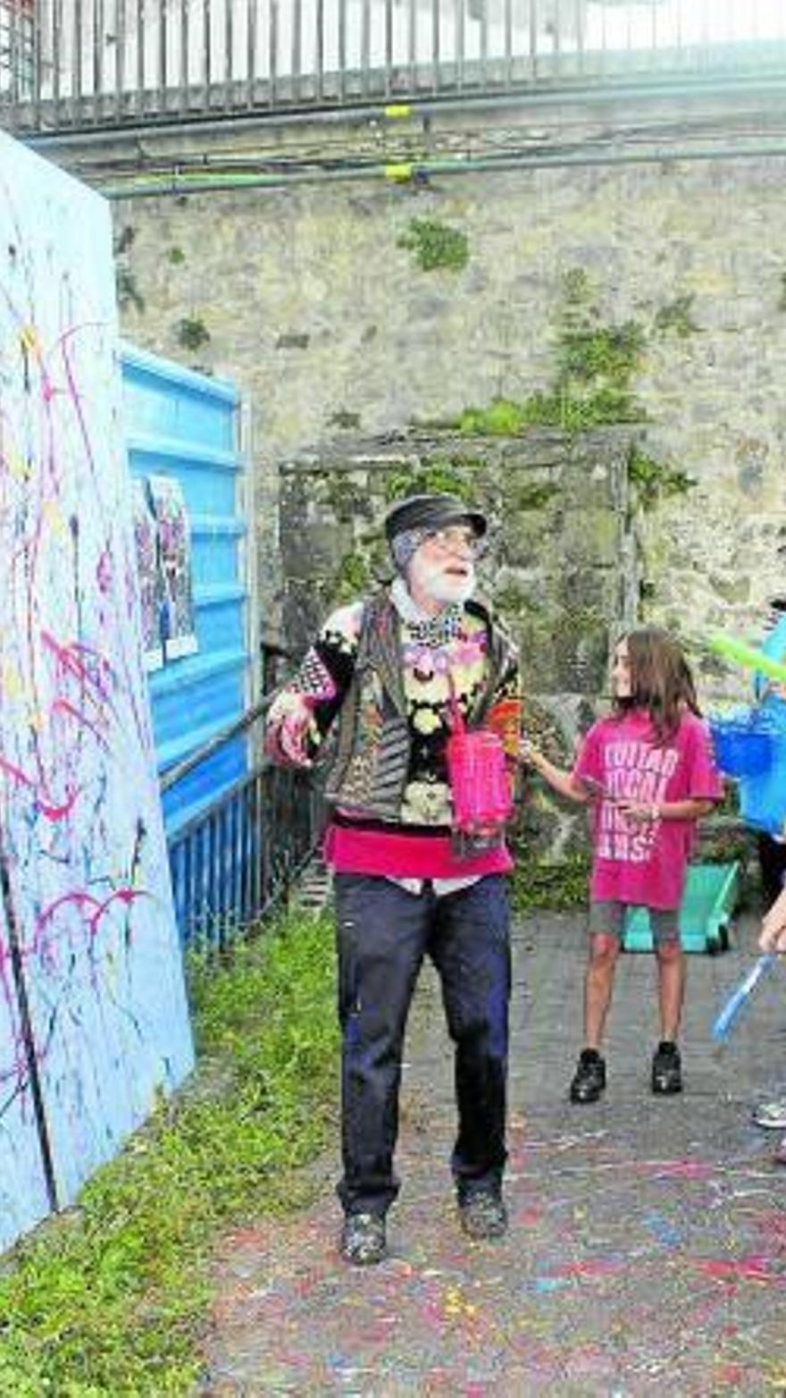 bergara. Donostiako Miramar jauregian egon eta gero, Juan Gorriti artista nafarraren Aralar Itsasmira izenburuko erakusketa Bergarako Aranzadi ikastolara heldu da Kilometroak 2016 jaiaren eskutik. Lurrari, mendiari, egurrari eta basoari lotuta dagoen Oderitzeko artistaren obra urriaren 28ra arte egongo da zabalik ikastolako eraikinean, astelehenetik ostiralera, 18.00etatik 20.00etara. Atzoko inaugurazioan, Gorritik (eskumako irudian), Aranzadiko ikasleekin batera, datorren igandean, Gipuzkoako ikastolen aldeko festan bere lekua izango duten bi panel margotu zituen. Ekitaldira Pirritx eta Porrotx pailazoak ere gerturatu ziren umeen aurpegietan irribarrea piztuz. Argazkiak: Anabel Dominguez