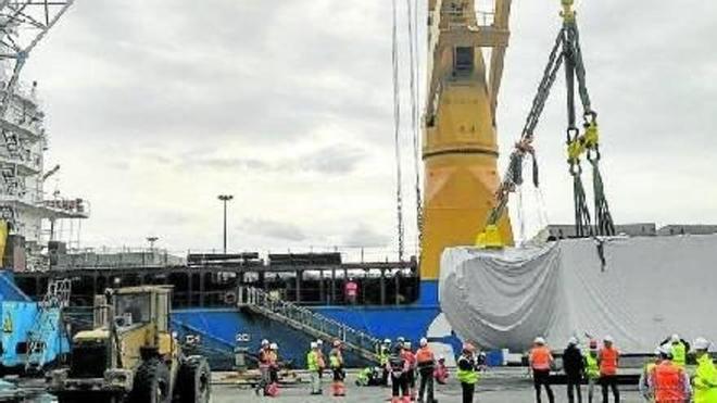 puerto. El buque BBC Amethyst descargó ayer en el Puerto de Pasaia un generador eólico de 300 toneladas procedente de Japón, cuyo destino es la localidad navarra de Sangüesa para proceder a su homologación. Esta certificación solo puede otorgarla el Centro Nacional de Energías Renovables situado en Navarra y otro organismo de Estados Unidos. Las dimensiones del generador han obligado a habilitar un dispositivo especial para su posterior traslado a Sangüesa, que no se realizará antes de una semana, según informó la Autoridad Portuaria. Foto: N.G.