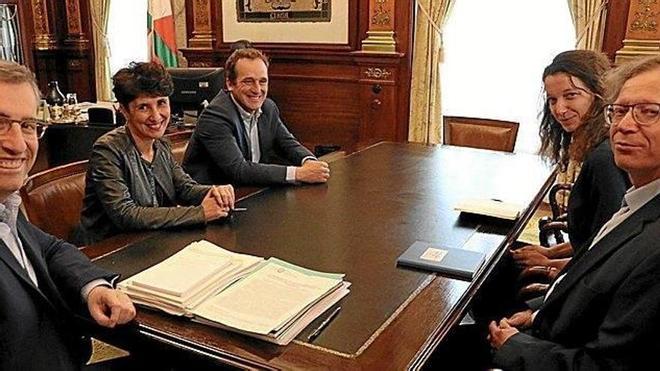 Galardón. La Diputación de Gipuzkoa será uno de los cinco organismos promotores de la segunda edición del premio UCGL Peace Prize, que reconoce iniciativas innovadoras a favor de la paz impulsadas por gobiernos locales de todo el mundo. La incorporación de la institución foral a este grupo promotor se formalizó ayer con la visita de los representantes de la organización holandesa Pax for Peace, la ONG socia de esta iniciativa, Dion Van den Berg e Inge Baanders, a la Diputación. El premio, de carácter trienal, se concederá en 2019 en la ciudad de Durban (Sudáfrica). Foto: N.G.