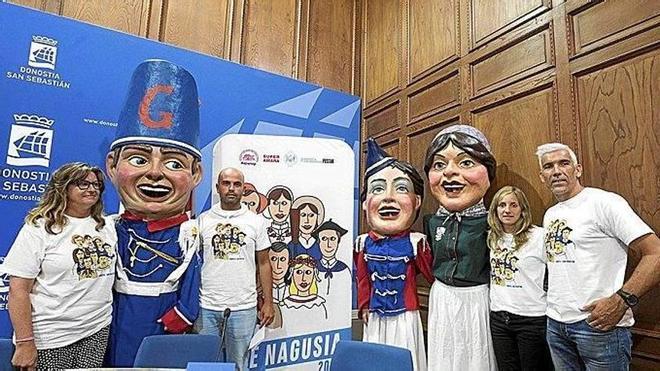 Los cabezudos y gigantes recorrerán los barrios de Amara y El Antiguo los días 16 y 17 de agosto, respectivamente. El 16 los cabezudos se acercarán también al Hospital Donostia para que “todos los niños disfruten de las fiestas”, según el diseñador de la camiseta y miembro de la comparsa, Iñigo García, Garvi.