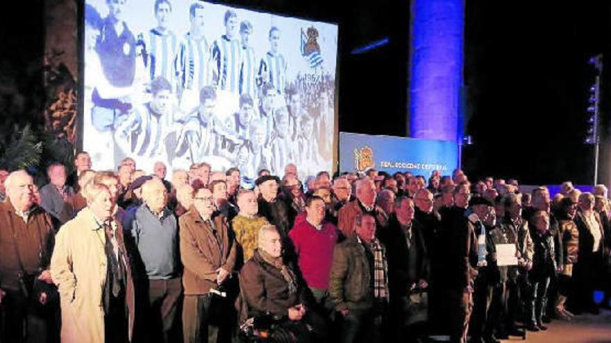 Donostia - La Real homenajeó ayer a 147 socios que se han mantenido enrolados en el club durante 50 años de forma ininterrumpida, concretamente desde 1967, año en el que se consiguió el señalado ascenso de Puertollano. El presidente Jokin Aperribay fue el encargado de conceder la insignia de oro de la entidad txuri-urdin a todos ellos en un acto que tuvo lugar a última hora en el Museo San Telmo de Donostia. A la entrañable cita asistieron también el director de fútbol, Roberto Olabe, los técnicos Imanol y Gonzalo Arconada, los capitanes Illarramendi, Zurutuza y Oyarzabal, además de expresidentes, como Iñaki Alkiza, y exjugadores, como Luis Miguel Arconada o Imanol Agirretxe, entre otros. - N.G. / Fotos: Gorka Estrada