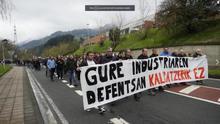 Economía Los plantilla de Sidenor Azkoitia protesta contra el cierre del tren de laminación y el traslado de 36 compañeros a Cantabria