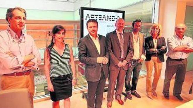 Irun. Jose Antonio Santano, alcalde de Irun; Aitor Kerejeta, alcalde de Hondarribia; Carlos Ruiz, director de la Obra Social de Kutxa; Ignacio Chillida, director de la Fundación Eduardo Chillida-Pilar Belzunce; Jordi Mollà, artista y actor, e Ignacio Scarpellini, director de Arteando, presentaron ayer el programa de la tercera edición de la Feria Internacional de Arte Contemporáneo de Irun, que se celebrará entre el 7 y el 11 de agosto, y que mostrará más de 25 expositores con 1.500 obras por solo 5 euros.
