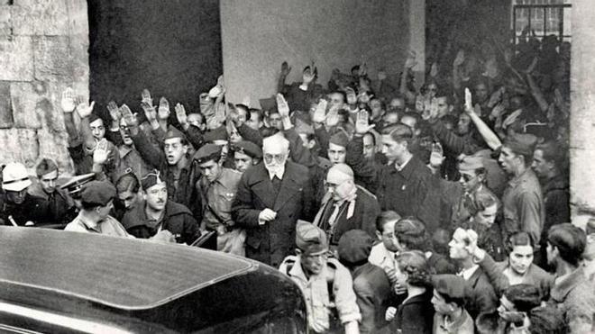 Fue el día en el que Unamuno, harto de la salvaje represión, se enfrentó contra los fascistas en el Paraninfo de la Universidad de Salamanca. Allí dejó clara su postura, tras haber apoyado durante un breve plazo de tiempo una asonada militar que creyó rectificadora de algunos excesos del Frente Popular –excesos también denunciados por otros líderes de izquierdas como Clara Campoamor– y que supuso sería tan incruenta como la del general Miguel Primo de Rivera. Independientemente de las palabras exactas que emplease Unamuno en el Paraninfo, son indiscutibles las consecuencias: destitución de sus cargos públicos, incluido el de rector.