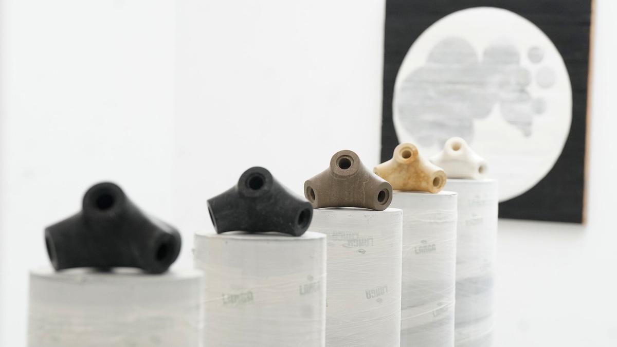 El artista multimedia Oscar Tuazon (Seatle, EEUU, 1975), escultor, instalador, pintor y diseñador de arquitecturas presenta en la galería Cibrián de Donostia un conjunto de seis pinturas y seis esculturas dedicadas a la luna que se mueven todas ellas entre el concepto y el minimalismo. Tuazon siempre trabaja con materiales industriales y naturales que cuestionan los límites entre arte y construcción, trabajando con piedra, madera, acero y hormigón. En esta ocasión, con mármol negro y crema de Markina para la escultura, y con esmalte y acrílico sobre cedro rojo tallado y carbonizado en la pintura.