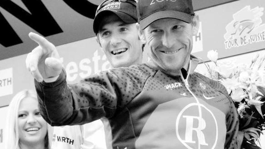 "I"m ready for the TdF" -Estoy preparado para el Tour-, escribió en su twitter Armstrong tras ser quinto en la etapa reina de la ronda suiza. Habrá que creerle, pero ayer, con su irregular actuación, volvió a mostrar que sigue sin tomar el pulso a las contrarrelojes. No es propio de un especialista que en el kilómetro 11,4, tras el tramo ascendente, pierda 51 segundos con Martin y 16 con Schleck, y en los 15,5 kilómetros posteriores, descendentes y revirados, donde las curvas y el asfalto mojado por la llovizna no permitían exprimir el 55x11, remonte casi quince puestos, ceda otros 18 segundos con Martin y sólo 8 con Cancellara, y aventaje a Schleck en 21. O se atragantó en las rampas iniciales, o pecó de conservadurismo ante una posible falta de fe. Pero, en la meta sólo cedió 21 segundos a Larsson y Leipheimer, cuarto y quinto clasificados.