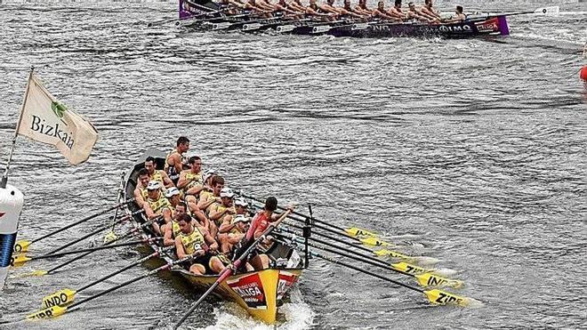 Con las cuatro traineras emparejadas, el semáforo se puso en verde. Orio tenía ante sí la oportunidad de abrir una mayor brecha en la cabeza de la liga. El bote amarillo no falló en su labor de aprovechar las bondades de su calle, sobre todo en la vuelta hacia Bilbao. Sin embargo, lo que quizá no esperaba la San Nikolas era el arranque de Santurtzi. Un tirón inicial al que no pudo dar respuesta Orio y que, a la postre, resultó determinante. La Sotera logró la misma ventaja en meta que en la primera ciaboga. Los cinco segundos de margen con los que viró en la complicada baliza exterior le dieron alas a los morados. El veterano Juan Mari Lujambio, que suplió a Cristian Garma en la popa de la trainera, sabe muy bien cómo son las corrientes del Ibaizabal y maniobró rápidamente a estribor para aprovechar lo máximo posible el extremo de la calle 1, y si se pudiera, de la calle 0. No pudo casi rozar remos con el muro de Portugalete porque por ahí viajaba Orio, ansioso por recortar las diferencias a la vuelta.