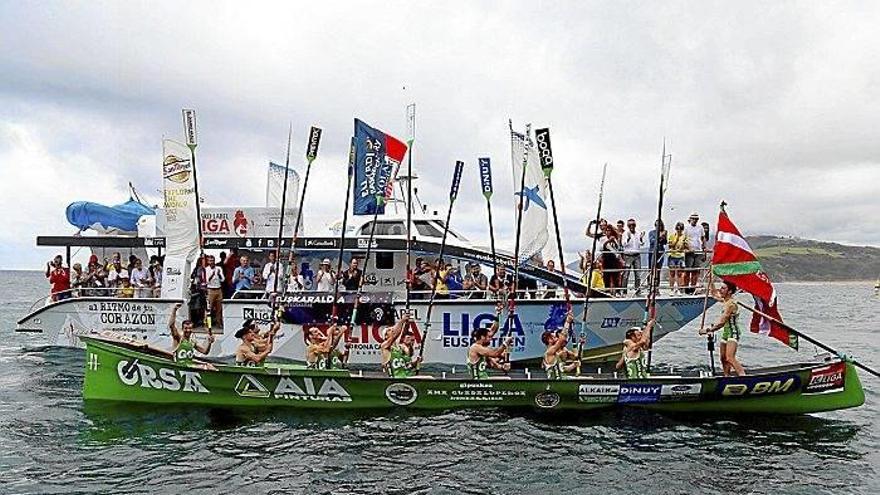 Con esta cuadrilla rompió Hondarribia la regata al inicio del tercer largo. Se llegó a ir a más de diez segundos de Orio en algún momento del trabajo de brancas, pero maniobró ocho por delante. La bandera estaba encaminada para los verdes, pero el líder iba a vender cara su piel en la jornada. Sobre la ola, la San Nikolas aumentó su ritmo en el último tramo y logró acercarse al bote bidasotarra en el rush final, pero no inquietaron a los ganadores, que cruzaron victoriosos la meta con cinco segundos de ventaja. “Ederra estropada”, gritó Amunarriz a sus chicos, que ayer se alimentaron por partida triple: victoria, bandera y confianza en sus posibilidades. Los verdes están preparados para lo que se viene en septiembre.