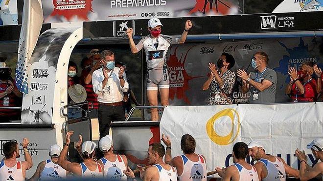 No pudieron ondear la bandera en la tarde de ayer, pero haber recortado dos puntos a Santurtzi y colocarse a solo seis puntos del liderato fue un nuevo logro para los pupilos de Mikel Orbañanos. Sufriendo más que de normal, la regata de ayer no fue la mejor de Hondarribia, y se descolgó de la cabeza del turno ya en los primeros minutos. A partir de entonces, su lucha se centró en superar a la Sotera, y finalmente lo consiguieron. Los vizcainos no pusieron fácil la tarea a Hondarribia, pero a pesar de marcar un tiempo dos segundos peor en la última maniobra, el último popare tuvo color verde. El ritmo impuesto para terminar la actuación sumado a una gran txanpa final fue inalcanzable para Santur-tzi, que todavía no puede celebrar el campeonato liguero. La diferencia es ahora de seis puntos.