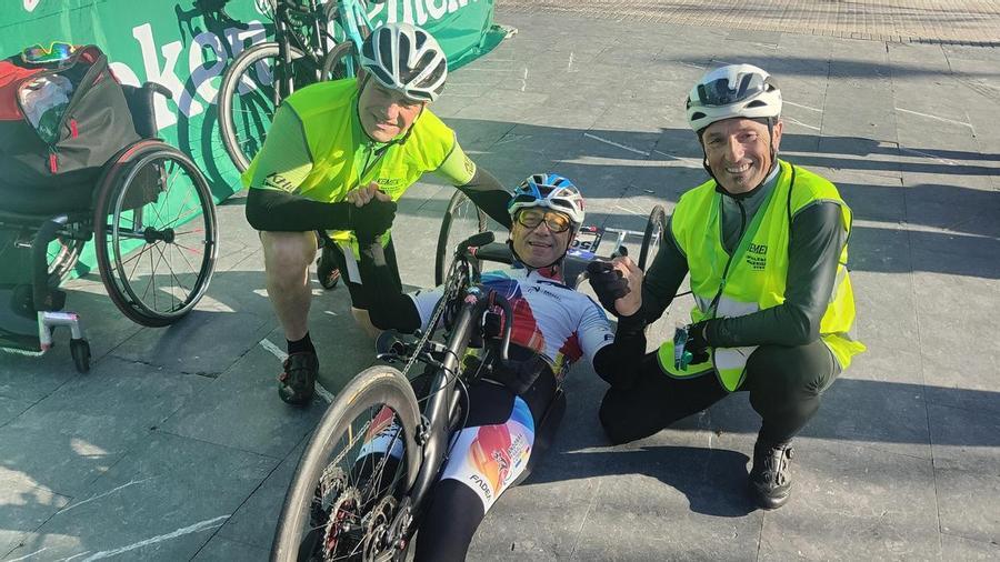 Son tres historias en uno, y el más emocionado al terminar la prueba era Carlos Cuña, uno de los dos asistentes: “Me llamaba mucho la atención cuando veía pasar los atletas paralímpicos y hoy he debutado de acompañante. He alucinado con la velocidad en las bajadas, pero hasta que no vas con ellos no te das cuenta. Es imposible seguirles. Hasta 80 kilómetros por hora. Pero luego, sobre todo el ambiente, es una pasada".