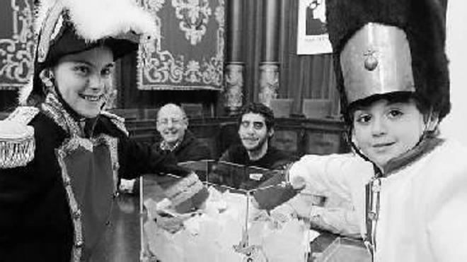 donostia. Los 132 donostiarras afortunados que este año vivirán la Izada o la Arriada desde el balcón de la biblioteca de la plaza de la Constitución ya tienen nombre y apellidos. El sorteo para elegirlos tuvo lugar ayer por la tarde en el salón de plenos del ayuntamiento, entre los 3.000 solicitantes que se apuntaron la semana pasada. Para elegir a los afortunados se distinguieron seis grupos: el de las mujeres y el de los hombres de 18 a 35 años, el de las mujeres y los hombres de 36 a 65 años y el de las mujeres y los hombres mayores de 66 años. En la imagen, un momento del sorteo de ayer por la tarde, que corrió a cargo del Tambor Mayor y la Generala de la Tamborrada Infantil. Foto: gorka estrada