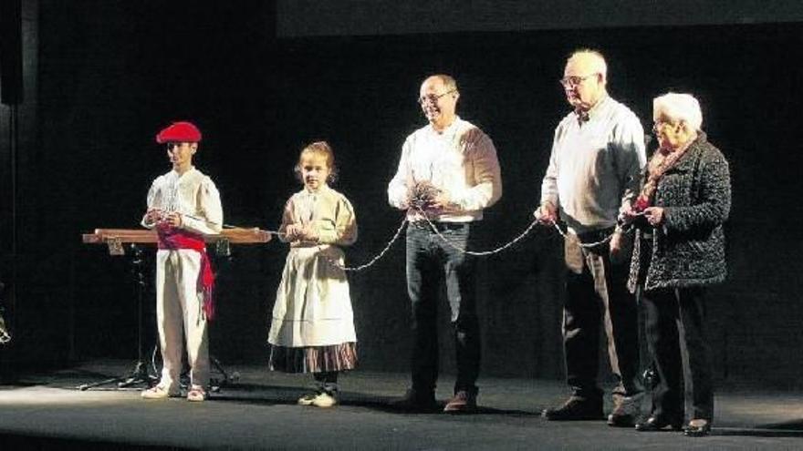 Belaunaldi horretako 148 donostiar izan ziren atzo Ttanttaka an-tzerki taldeko Mireia Gabilondok prestatutako ikuskizunean: musika, dantza, bertsoak eta bideoak izan ziren. Juan Karlos Izagirre alkateak euskararen lekukoa hartu zuen belaunaldi zaharreko ordezkarien eskutik eta bi neska-mutikoen eskuetan utzi zuen. Euskararen transmisioaren hariak ez duela etenik irudikatu zuten horrela eta aurresku batekin amaitu zen ekitaldia. - N.G.
