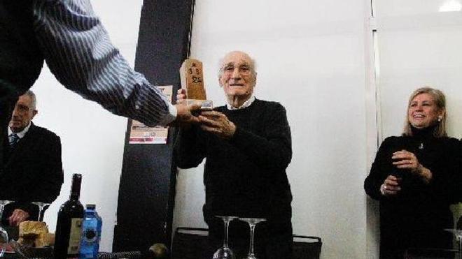 reencuentro antiguotarra. Un emocionado Gerardo Bujanda fue el protagonista ayer del Reencuentro Antiguotarra, comida que cumple 34 años y en la que Patxatxa Taldea decidió en esta ocasión homenajear al histórico dirigente del PNV a sus 95 años de edad. Antiguotarra nacido en la misma calle Matía, Bujanda ha superado en los últimas semanas una neumonía que a punto ha estado de impedirle acudir a este homenaje entre amigos. Fueron muchos los que no quisieron perderse este sencillo acto en el polideportivo Bentaberri y, entre otros, también acudieron a la cita actuales compañeros de partido como el presidente del GBB, Joseba Egibar, y el portavoz del PNV en el Ayuntamiento donostiarra, Eneko Goia. Foto: A. Garcia