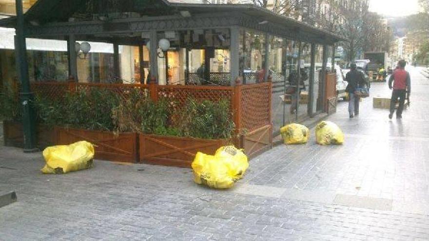 Gasco recalcó que las bolsas se acumulan y que, si hace viento por ejemplo, las de poco peso, como las de envases, vuelan por el suelo. “Cuando toca plástico, la Parte Vieja es una marea amarilla de bolsas por todas sus calles, que permanecen en la vía pública hasta que el único camión que se dedica a su retirada pasa a recogerlas”, dijo. Asimismo, añadió: “Es ya habitual, especialmente los fines de semana, que muchas bolsas queden fuera de los contenedores soterrados de plaza de Sarriegi, bien porque están llenos o por falta de civismo de quienes las depositan en la vía pública”.