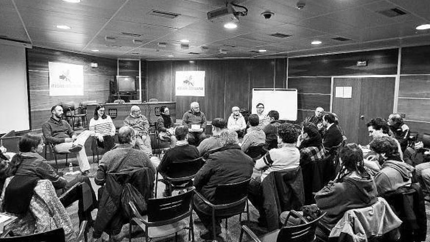 elecciones. Julio C. Biurrun, Loïc Alejandro, Haizea Garay, Amaia Martín y Juantxo Domínguez presentaron ayer sus candidaturas para encabezar la lista de la plataforma Irabazi-Ganemos Donostia para las próximas elecciones municipales. La presentación la hicieron frente a los congregados en asamblea en Anoeta que, a partir de ahora, tienen una semana de plazo para votar por uno de ellos. El proceso concluirá con la presentación el día 21 de la candidatura con la que esta plataforma aspira a llegar al Ayuntamiento. Foto: Gorka Estrada