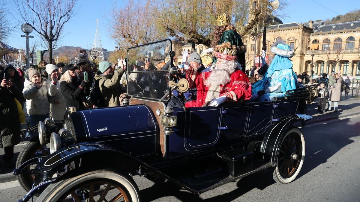 Las aceras guipuzcoanas se volvieron a llenar al paso de la Cabalgata de Reyes. Miles de niños de todos los rincones de Gipuzkoa no quisieron perderse el desfile de Sus Majestades para darles calor, y aprovechar de paso, para pedirles los últimos regalos que no añadieron a sus cartas.