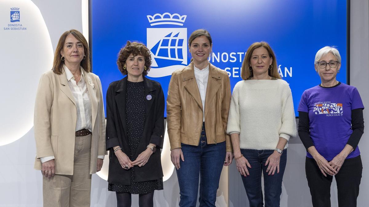 Concejalas de todos los grupos políticos de la corporación donostiarra -PNV, EH Bildu, PSE/EE, PP y Elkarrekin- han participado este mediodía en un acto conjunto en el consistorio en el que han leído la declaración institucional aprobada por unanimidad con motivo del 8M, el Día de la Mujer que se celebra el próximo domingo.