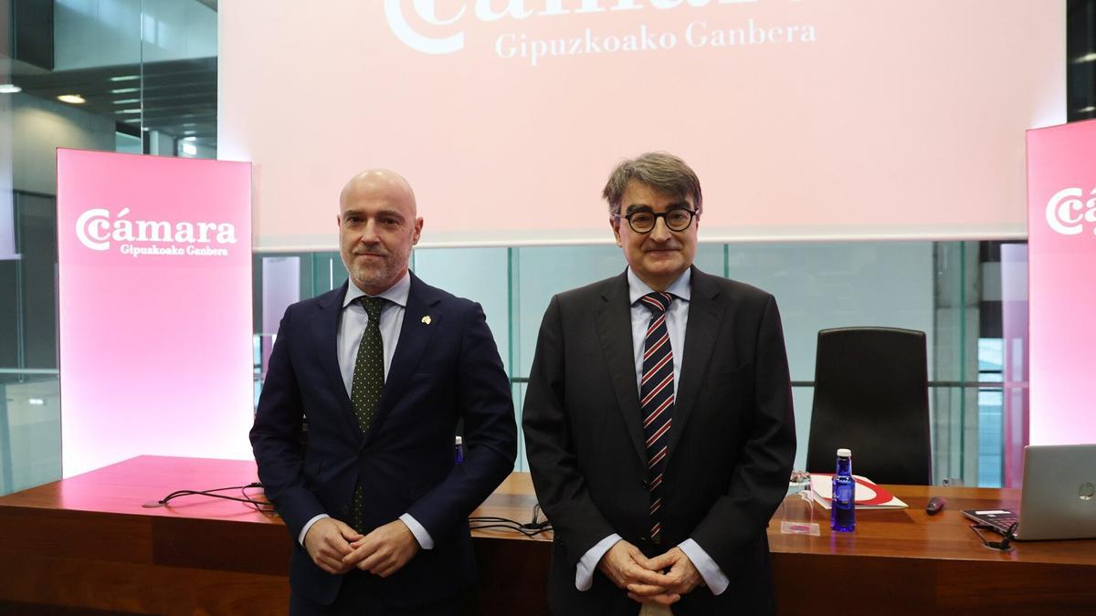 El presidente de la Cámara de Gipuzkoa ha comparecido con el director general, Javier Zubia, para dar cuenta de los resultados de la encuesta realizada entre 300 empresas guipuzcoanas de todos los sectores de actividad, en los que se recoge una visión moderadamente optimista del presente ejercicio tras cerrar un 2025 con un balance positivo. Las razones se encuentran, según han apuntado, en varios factores entre los que destaca el esfuerzo de diversificación de productos, sectores y mercados que han realizado los negocios guipuzcoanos, a quienes han reconocido su respuesta a un contexto internacional complicado.