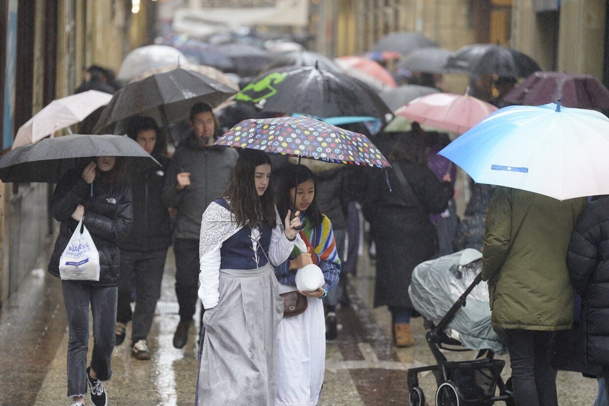 El pronóstico se ha cumplido y la lluvia ha hecho su aparición desde primera hora de la mañana de este jueves en el que Donostia celebra la tradicional Feria de Santo Tomás. Sin embargo, esto no ha impedido que cientos de personas hayan salido a la calle para disfrutar de este día entre talos, sidra y, por supuesto, con la cerda Xixili como protagonista.