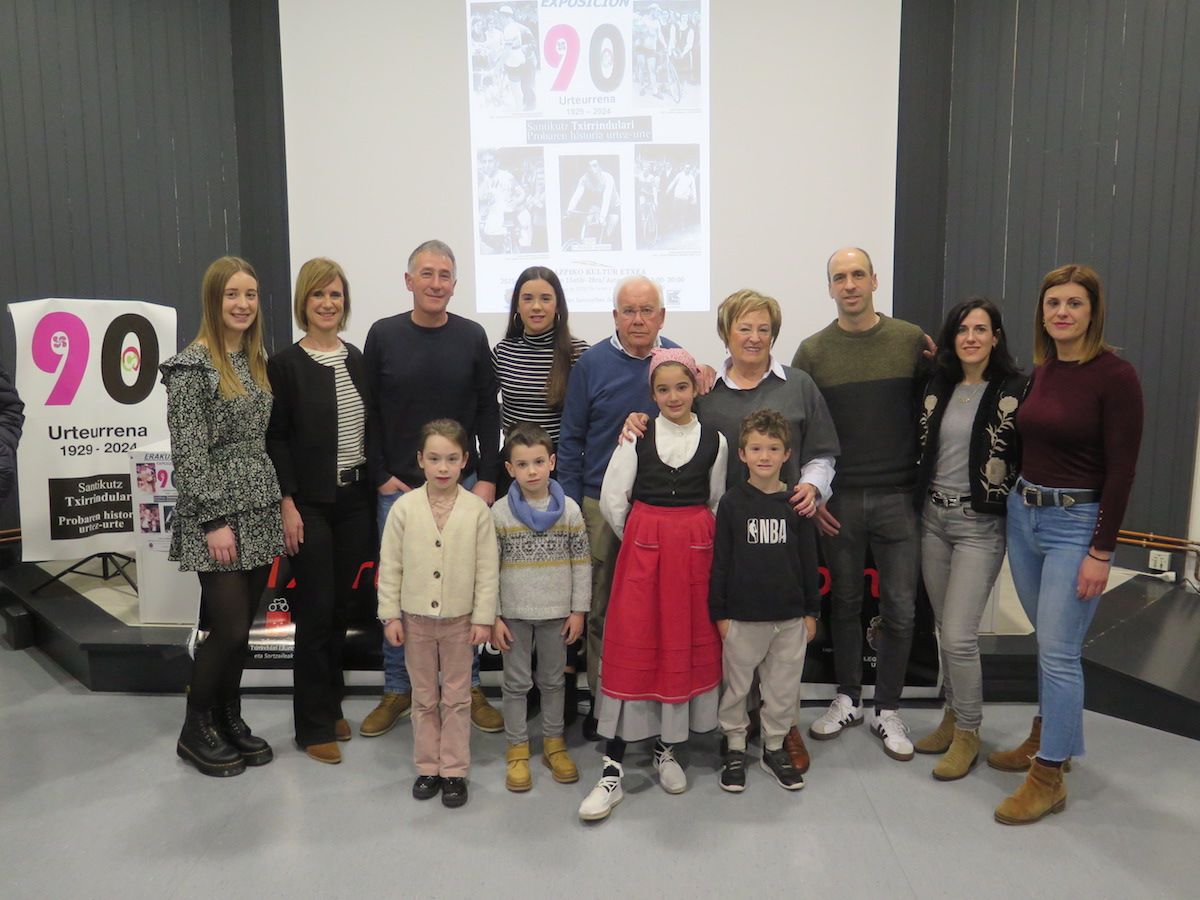 El alcalde Eric Gálvez, con los hijos de Juan Cruz Ganzarain (ganador en 1947).