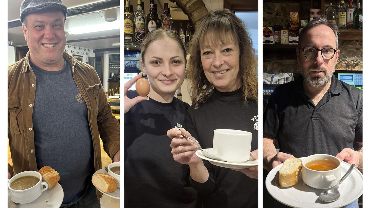 En el Ostatu de Zerain, Aiert Izagirre trata de tener caldo todos los fines de semana. “Hago una buena cantidad y si sobra, sigue entre semana hasta que se acaba”. Aiert usa zancarrón, cebolla, zanahoria y puerro, y sirve el caldo con un poco de huevo cocido cobrándolo a 2,40 euros. “Tenemos Aizkorri al lado y los que más lo piden son los que vuelven del monte, y el pintxo de la carne del caldo, simplemente con sal y aceite de oliva, es el que más se vende el fin de semana”. Opina Aiert que en enclaves rurales como el suyo es más habitual encontrar productos como el caldo: “El mercado ha cambiado mucho, y así como aquí triunfan el chorizo cocido y la carne, en otros sitios es el pan bao, la cochinita pibil…” Eso sí, este cocinero observa que “cada vez hay más costumbre entre los jóvenes de pedir un caldo”. Todo no está perdido.