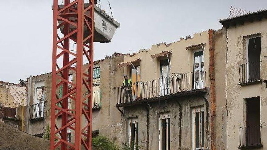 Desde la zona alta de San Bartolomé puede verse ya cómo faltan las partes superiores de las construcciones así como zonas interiores de los edificios. Los tres inmuebles están llamados a desaparecer para abrir un hueco por el que discurrirá la conexión de la nueva calle Estella-Lizarra con Easo.