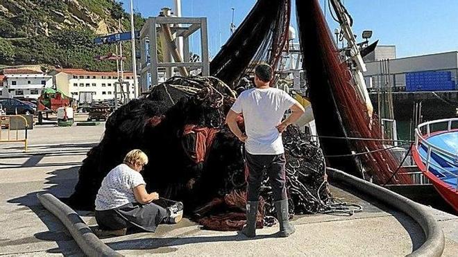 Las cuatro mujeres presentes en la lonja se concentran todas en una única red. Al parecer, se trata de una auténtica “reliquia” que nació junto al barco Irigoien en el año 1992. Uno de los hermanos continúa con sus labores de pescador en esta embarcación y, por tanto, las cuatro hermanas rederas siguen con sus respectivas tareas. “Mientras la familia siga involucrada, aquí seguiremos”, afirma una de ellas mientras señala la enorme red que tiene en sus manos. “Mide 300 brazas (alrededor de 500 metros), y no mantiene ningún trozo original”, comenta. El trabajo realizado sobre ella es más que notable. Tras 50 años ejerciendo el oficio, una de las hermanas recuerda sus inicios. “Tenía 14 años y al terminar la escuela empecé con esto porque no había nada más que hacer”, comenta y añade: “Lo cierto es que después de tantos años, ahora que estoy jubilada, lo sigo viviendo casi como el primer día”. La pasión que se percibe en sus palabras es realmente llamativa, pues salta a la vista que se trata de un oficio de considerable exigencia física.
