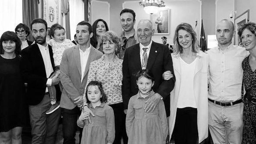 Continuó con la intervención su hijo Beñardo, que prosiguió con el discurso “tal y como lo hubiera hecho él, utilizando la primera persona”. Así, Beñardo destacó los gratos recuerdos de infancia en las calles de Irun que su padre atesora. “Hay una persona que merece un reconocimiento especial”, subrayó Elorz, de boca de su hijo, haciendo referencia a su mujer, Juana Lazkanotegi, y asegurando que con su apoyo incondicional ha podido desarrollarse como profesional y como persona. Por último, el homenajeado afirmó que sus cuatro hijos, Tatiana, Luis, Demetrio y Beñardo son sus cuatro pilares de su vida y que le han dado los mejores regalos que se le pueden hacer a un padre: “Seis nietos y otro que viene en camino”.