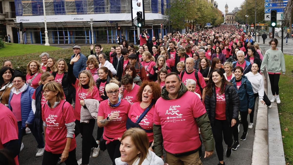 Las inscripciones 'online' ya están cerradas, pero se mantienen las presenciales hasta el mismo día de la marcha en Eroski Urbil, Eroski Garbera, Deportes Apalategui Zurriola, Deportes Apalategui Women, las delegaciones de Katxalin de Bergara, Zumarraga y Legazpi, y también en la terraza del Ayuntamiento en Alderdi Eder. El precio es de ocho euros, y toda la recaudación se destinará al Grupo de Investigación del Cáncer de Mana del Instituto de Investigación Sanitaria BioGipuzkoa.