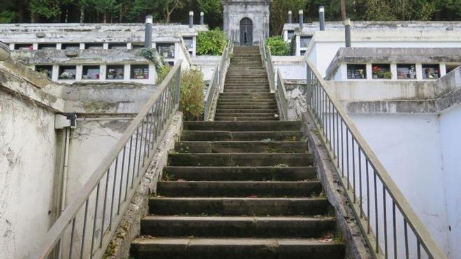 Al construirse en una ladera tan escarpada, optaron por hacerlo en seis alturas. Hasta para acceder a la primera planta hay que subir escalones. Y para llegar a la cima hay que subir más de 70 escalones. Los familiares de los que son enterrados en la zona más alta del cementerio lo tienen complicado para llegar allí, pero les queda el consuelo de que sus seres queridos están muy cerca del cielo.