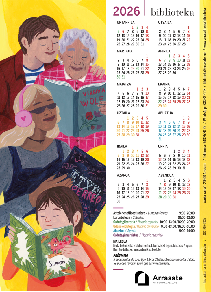 El cambio queda reflejado en el marcapáginas de 2026, diseñado por la ilustradora Iratxe López de Munain, y también puede consultarse en la página web de la biblioteca.
