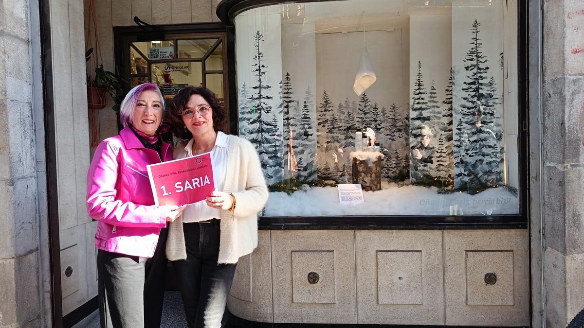 Oñati ha vuelto a vestirse de Navidad gracias a la creatividad y el cuidado de sus comercios. El concurso de escaparates ha fallado este jueves sus galardones en una edición que alcanza la mayoría de edad. El primer premio ha recaído en Amalur belar denda, cuyo escaparate de Kale Zaharra ha conquistado al jurado con un paisaje acogedor y nevado de pinos que invita a detenerse y respirar calma.