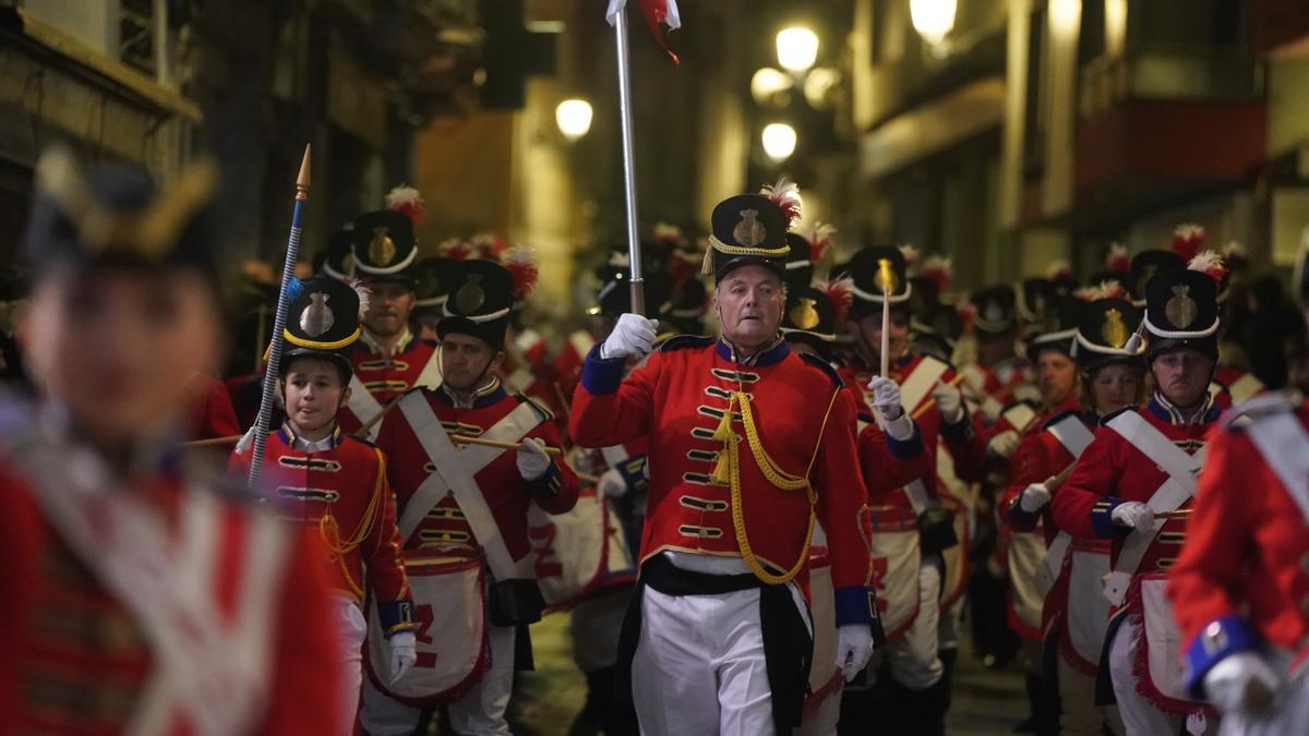 Megafoniatik entzuten zen musikak lagunduta, konpainiak alde zaharreko kaleetan barrena abiatu dira, Soreasuko San Sebastian parrokiarako bidean.