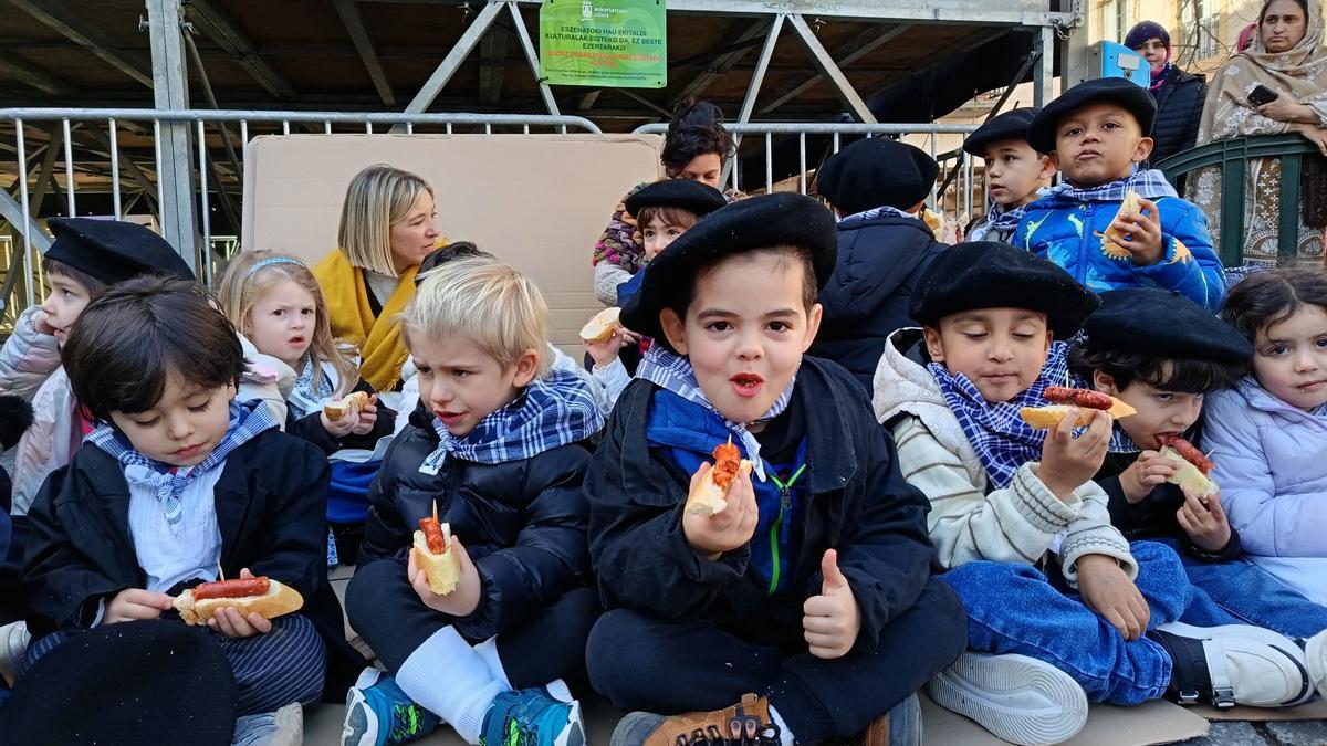 Entre sonrisas, las y los txikis han disfrutado de la imprescindible txistorra, calentando motores para unos días en los que la calle se convierte en escenario y punto de encuentro.