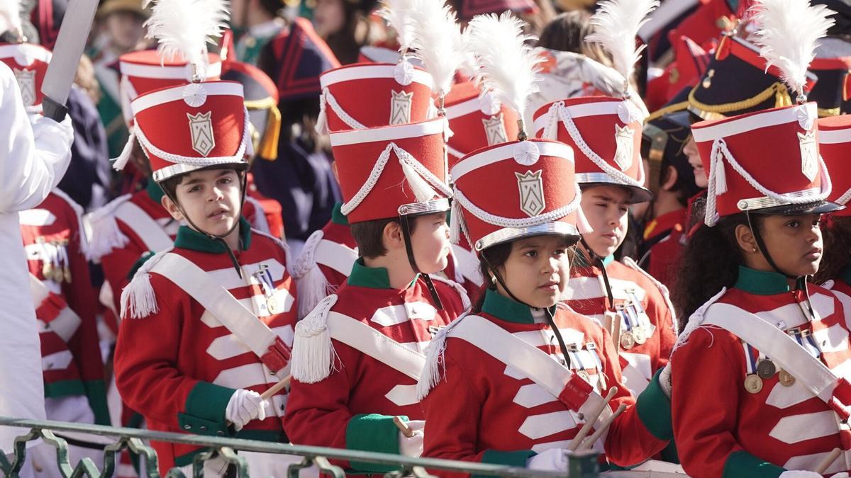 Hasta 4.630 pequeños, perfectamente divididos en 45 compañías de 38 centros escolares gracias al papel casi invisible de los profesores, los verdaderos guardianes de que todo salga bien, han desfilado cargados de ilusión y, sobre todo, mucho ritmo. Como cada año, el sonido de los tambores ha empezado antes de mediodía, mientras los diferentes colegios se acercaban a las inmediaciones del Ayuntamiento y se colocaban en sus correspondientes puntos.