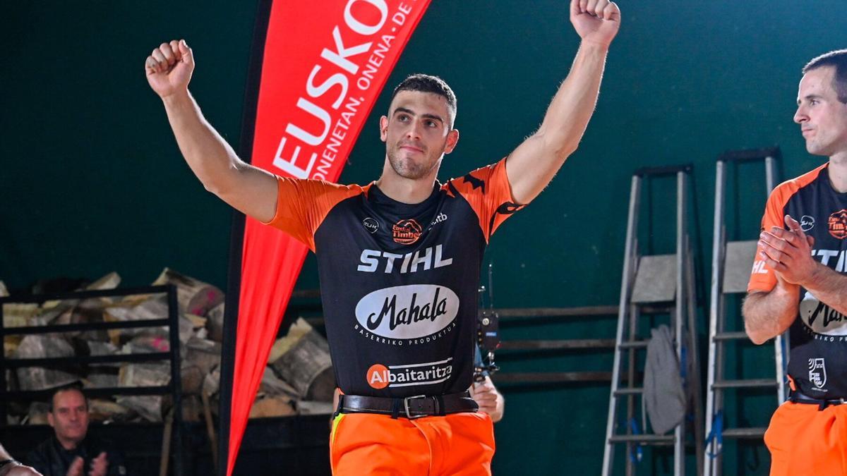 Iker Vicente es el aizkolari total. El navarro se impuso a Julen Alberdi en la final de la primera edición del Euskal Timber, disputada en Zarautz, y se coronó como el cortador de madera más completo en Euskal Herria. Y es que esta competición reunía cuatro modalidades de corte. Los participantes tuvieron que realizar un tajo a un tronco de 40 centímetros de diámetro con motosierra, partir un tronco de 30 centímetros en horizontal con un hacha, realizar un nuevo corte al tronco de 40 centímetros con una sierra y volver a partir con el hacha un tronco de 30 centímetros, esta vez en vertical.