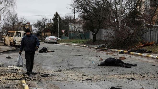 "Debemos investigar sin descanso estos crímenes cometidos por los militares rusos", dijo, evitando emplear el término 'crímenes de guerra', antes de agregar que los autores, tanto materiales como intelectuales, "deben rendir cuentas".