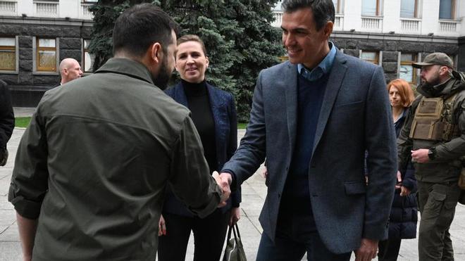 Zelenski explicó que la visita de Sánchez y Frederiksen se ha traducido en decisiones concretas y nuevos gestos de apoyo e hizo un llamamiento a ambos países, así como a todas las demás democracias europeas, para reforzar aún más las sanciones contra Moscú hasta imponer a Rusia un embargo energético y expulsar a todo su sector bancario del sistema financiero global.