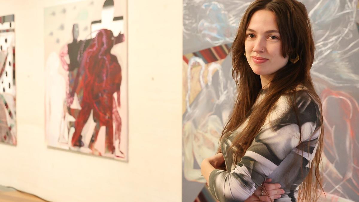 La autora, se nos dice, está relacionada también con las artes escénicas y experimentales, por lo que un elemento central de sus pinturas es el movimiento de las figuras: sentadas, diagonales, verticales, horizontales, tumbadas, ensimismadas, gaseosas, amorosas, pero siempre dinámicas y en movimiento, trazadas sobre elementos arquitectónicos u orgánicos, de colores granates, grises y ocres sobre los que resaltan sus cuerpos rosados. Como agitadas en el cosmos y en el universo en el que parecen estar atrapadas y del que parecen querer irrumpir en cualquier momento a la luz del día y al espacio.