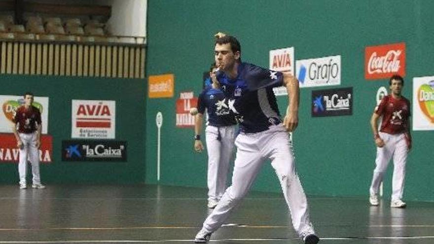 Eibar. Los jóvenes pelotaris guipuzcoanos Erik Jaka y Beñat Rezusta disputaron ayer su primer partido como profesionales en el choque que abrió el festival del frontón Astelena de Eibar. Ambos fueron rivales y el triunfo se lo apuntó Rezusta, con Aritz Lasa como delantero, ante Jaka y Kepa Peñagarikano (22-17). El zaguero zurdo exhibió seguridad, mientras que el delantero se mostró muy incisivo y valiente a la hora de atacar con el juego de aire. En la imagen de la izquierda, Erik Jaka; y en la de la derecha, Beñat Rezusta.