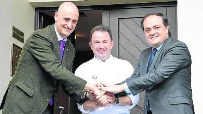 donostia - Las directivas de Real Sociedad y Barcelona compartieron las horas previas al partido de anoche con una comida en el restaurante Martín Berasategui, en Lasarte-Oria. Ausente el presidente de la entidad culé, Josep María Bartomeu, representó a los azulgaranas el dirigente del club Jordi Foix, que se fotografió junto a Jokin Aperribay y al propio Martín Berasategui antes del almuerzo.