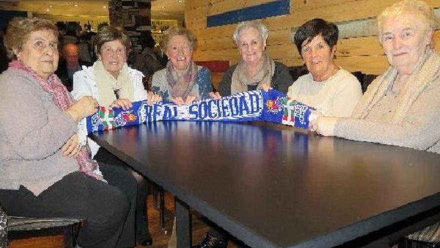 zumarraga - La Real Sociedad es como los juegos de mesa: para todas las edades. En Zumarraga cuenta con un grupo de forofas veteranas que se merece un homenaje. Todas tienen más de 70 años y las mayores se están aproximando a los 90, pero animan más que los jóvenes. Suelen reunirse en el bar Bidezar para ver los partidos y tuvimos el honor de ver con ellas el encuentro que disputaron la Real y el Sevilla en la ciudad del Guadalquivir.