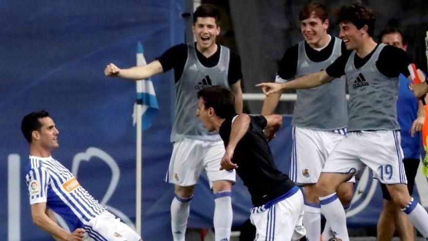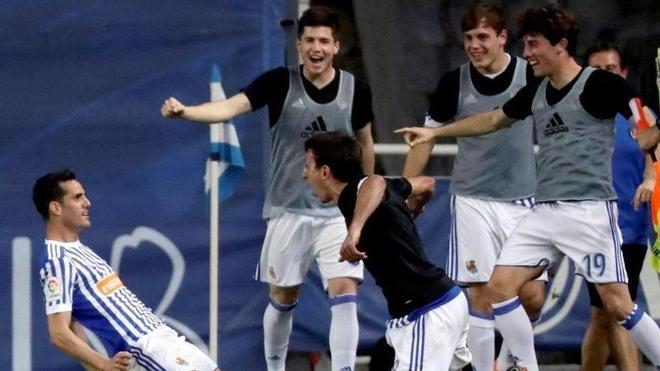 Acabó siendo apoteósico. Con Anoeta rendido a sus pies acompañando con olés sus pases, los blanquiazules casi derrumban las gradas que quedan del viejo estadio y el fondo sur que están levantando con una jugada antológica que finalizó con un cabezazo de Juanmi a la escuadra, a centro de De la Bella. Era el 3-0, que llegó en pleno delirio de un público entregado a la reacción y el buen juego de su equipo, que dio un auténtico baño al segundo clasificado del campeonato. Esta vez, en una noche tan perfecta, no merece la pena recordar lo que podía haber sido toda la temporada si este equipo hubiese jugado y rendido de esta manera. Cada campaña, la Real protagoniza una actuación de este calibre y demuestra que puede competir y derrotar a cualquiera. Eso tampoco nos puede sorprender. Pero es que la llegada de Imanol ha supuesto un cambio de rumbo espectacular. Son ya 10 puntos de 12 posibles y si se gana al ya descendido Málaga el domingo, la Real se pondrá a dos puntos del séptimo clasificado, que es el Sevilla, al que tiene que visitar, y que si vio su exhibición de ayer mientras prepara la final de Copa lo lógico es que comience a preocuparse por la opción de perder su silla.