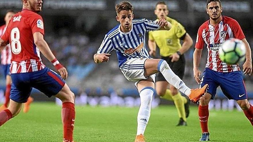 8 DE LA BELLA Muy mejorado. Competitivo en defensa, mucho más agresivo que antes. Un par de subidas buenas antes de la del descuento en la que asistió a Juanmi en plena apoteosis txuri-urdin.