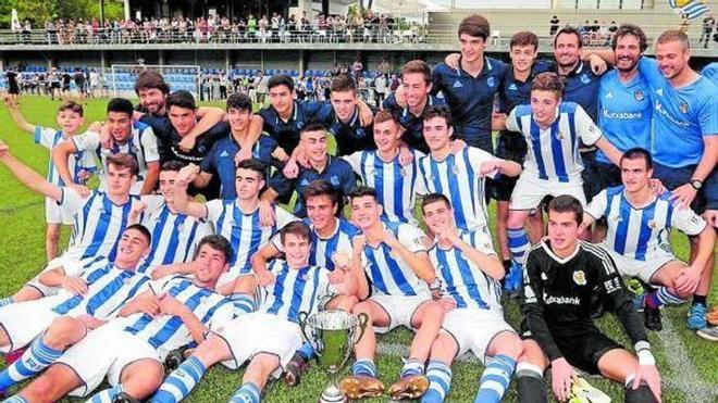 liga nacional juvenil - El Easo, segundo equipo juvenil de la Real Sociedad, se proclamó ayer campeón de la Liga Nacional, tras ganar en Zubieta su decisivo partido de la jornada final contra el Athletic. A los txuri-urdin, líderes con un punto de renta sobre el cuadro rojiblanco a falta de un partido, les servía un empate para certificar el título, pero se hicieron con la victoria y pudieron disfrutar de cierta tranquilidad durante los minutos postreros. La plantilla que dirige Unai Gazpio es la segunda de la estructura de Zubieta que canta el alirón esta temporada. Ya lo hizo semanas atrás el equipo de la Liga Vasca Cadete. El División de Honor juvenil, mientras, ha sido segundo y se enfrentará al Sporting en la Copa del Rey de la categoría (octavos de final). - Foto: Real Sociedad
