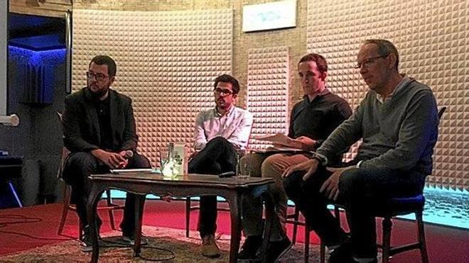 afición. La asociación de aficionados realistas Realsocialismo! convocó a bastantes aficionados en el Covent Garden del centro de Donostia en un debate que giró en torno a dónde y cómo nos imaginamos al club txuri-urdin en 2030. Después de las pertinentes presentaciones y en un ambiente muy realista, se celebró una mesa redonda en la que participaron Marc Merchén, Phil Ball y Oier Marigil, miembro de Realsocialismo! El redactor de NOTICIAS DE GIPUZKOA, Jurdan Arretxe, también colaborador de esta asociación, fue el moderador de la charla. Foto: N.G.