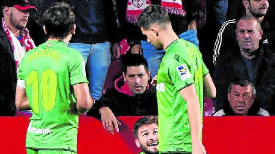 El parón le sentó mal a la Real y el Granada, que comenzó a apretar mucho más arriba y con un plus más de intensidad, fue acercándose a la portería visitante. Sobre todo aprovechando las pérdidas por imprecisiones de los realistas. Vadillo dio otro aviso al que respondió bien Remiro. Después de un disparo con la zurda de Sangalli que detuvo Rui Silva. En el minuto 35, Willian José tuvo una oportunidad de oro de lanzar una contra, pero se entretuvo demasiado y acabó haciendo una falta fruto de la impotencia. Vadillo chutó desde más de 35 metros y Remiro se la tragó. El tanto reabre el debate de la portería, ya que el año pasado el equipo se pasó meses sin jugar con su mejor meta. Y esta, al menos por ahora, no parece que el navarro sea superior a un Moyá que ha perdido la titularidad sin motivo aparente.