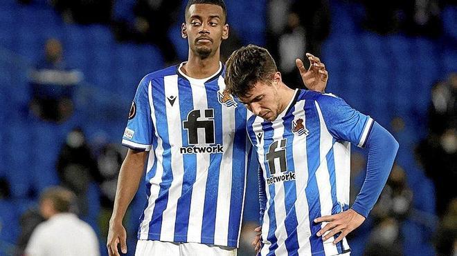 Martín Zubimendi no está atravesando su mejor momento en la Real. Quizá el cansancio acumulado tras una temporada, la pasada, interminable para el centrocampista, Juegos Olímpicos incluidos, está pasando factura a un futbolista que se estaba mostrando menos preciso de lo que él acostumbra. Pero ayer, con su gol, el primero con el primer equipo, hizo ilusionarse a la grada de Anoeta con una proeza que finalmente no llegó a suceder. Su estreno llegó con suspense, VAR de por medio, pero el colegiado, el británico Anthony Taylor, dio validez al tanto del centrocampista, que provocó el único estallido de alegría de una tarde para olvidar. Primero, por la puesta en escena del equipo, y después, por la consiguiente eliminación que certificó Forsberg en el minuto 88 desde el punto de penalti. Pero la eliminatoria comenzó a perderse mucho antes.
